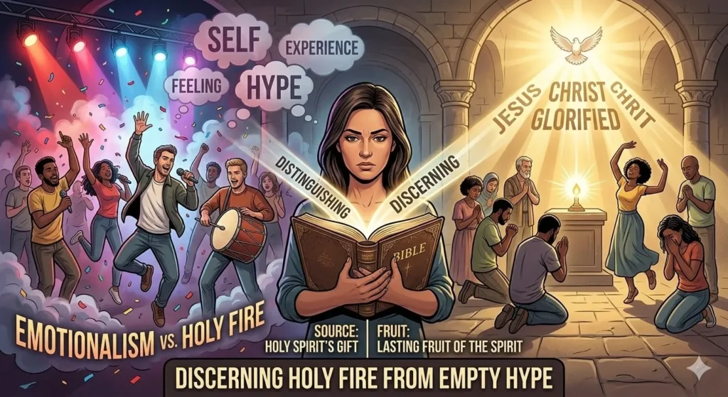 • Source: Emotionalism is manufactured by human effort (hype, music, peer pressure). Holy fire is a sovereign gift from the Holy Spirit.
