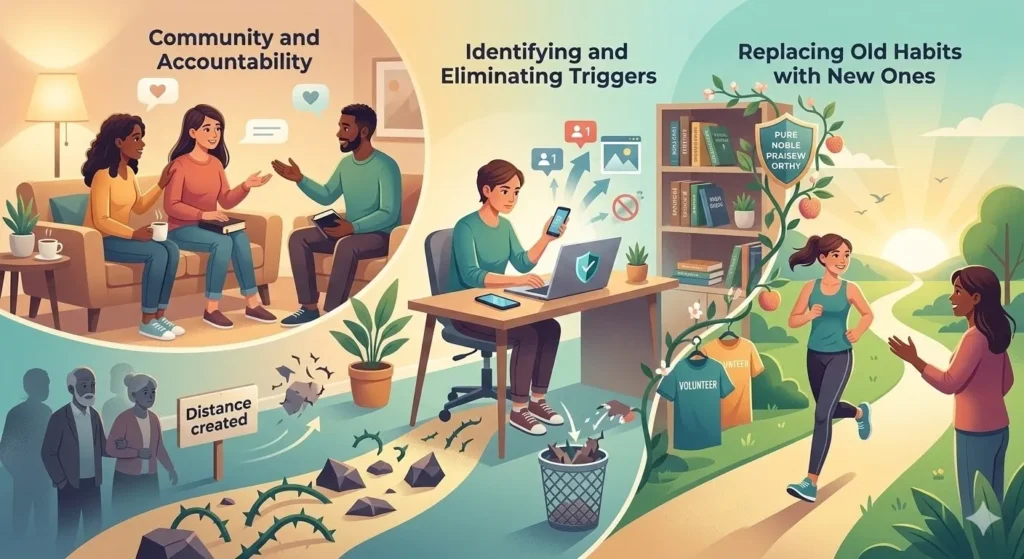 While soul healing is the foundation, there are also practical steps you can take to create an environment that supports your freedom. God provides the power, but He often calls us to partner with Him by taking wise and decisive action.